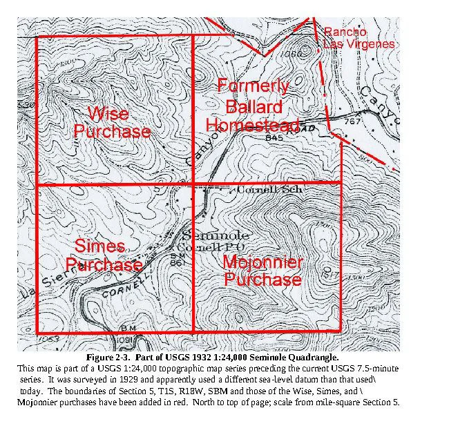 The community of Cornell, as conceived by Nathan Wise, was geographically rather amorphous, and it remains so. Were there to be a consensus on the matter, its boundaries might include the confluence of Sierra Creek and Triunfo Creek, Troutdale, new Cornell with The Old Place and neighboring residential developments perhaps as far east as Lake Enchanto once extended, but not so far as Malibu Lake and - upstream in La Sierra Canyon - the Rock Store, SSMHP, and arguably a bit farther to reach the vicinity of Alice Ballard's homestead, and possibly in that area, at least some privately developed landholdings.